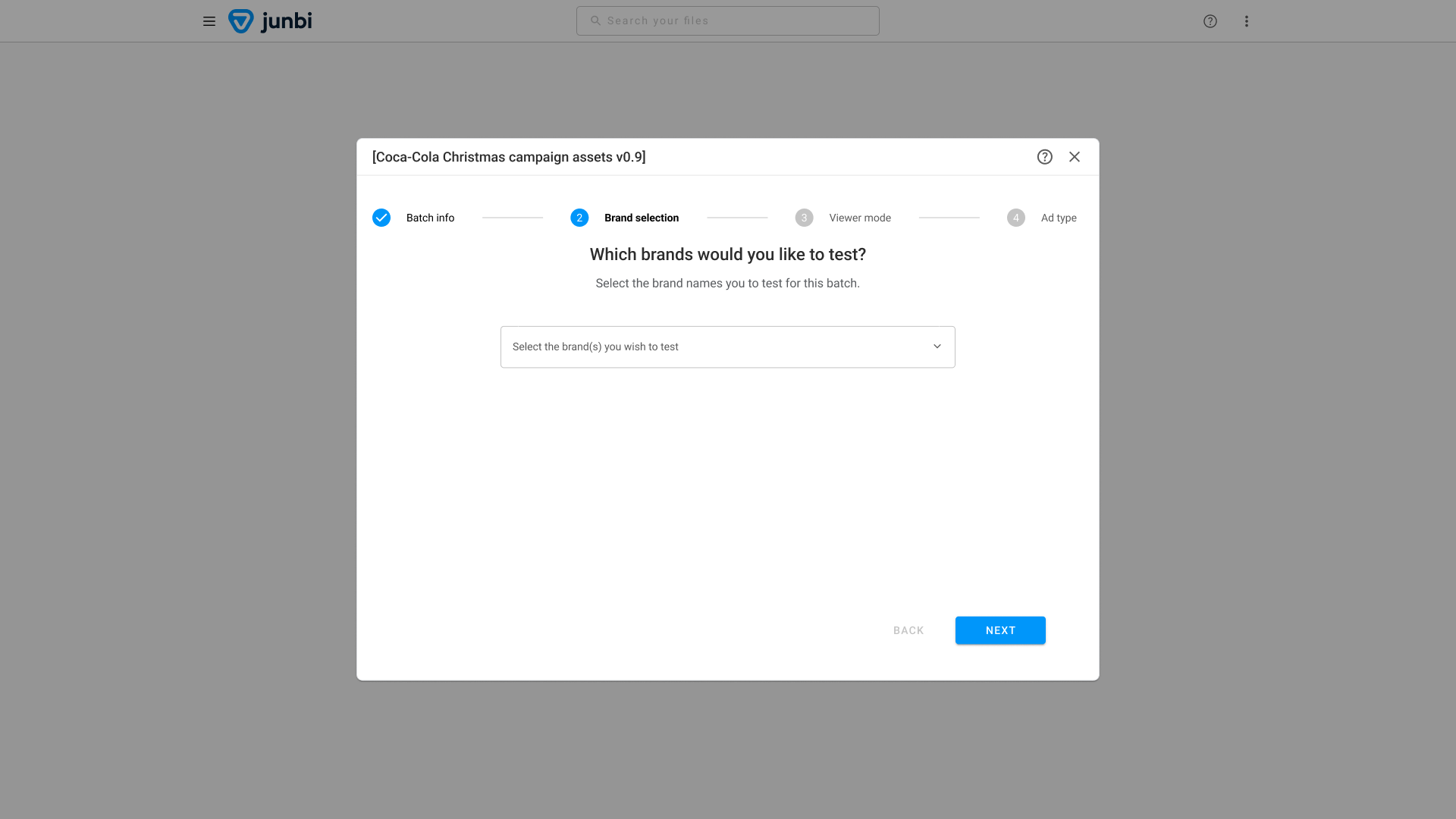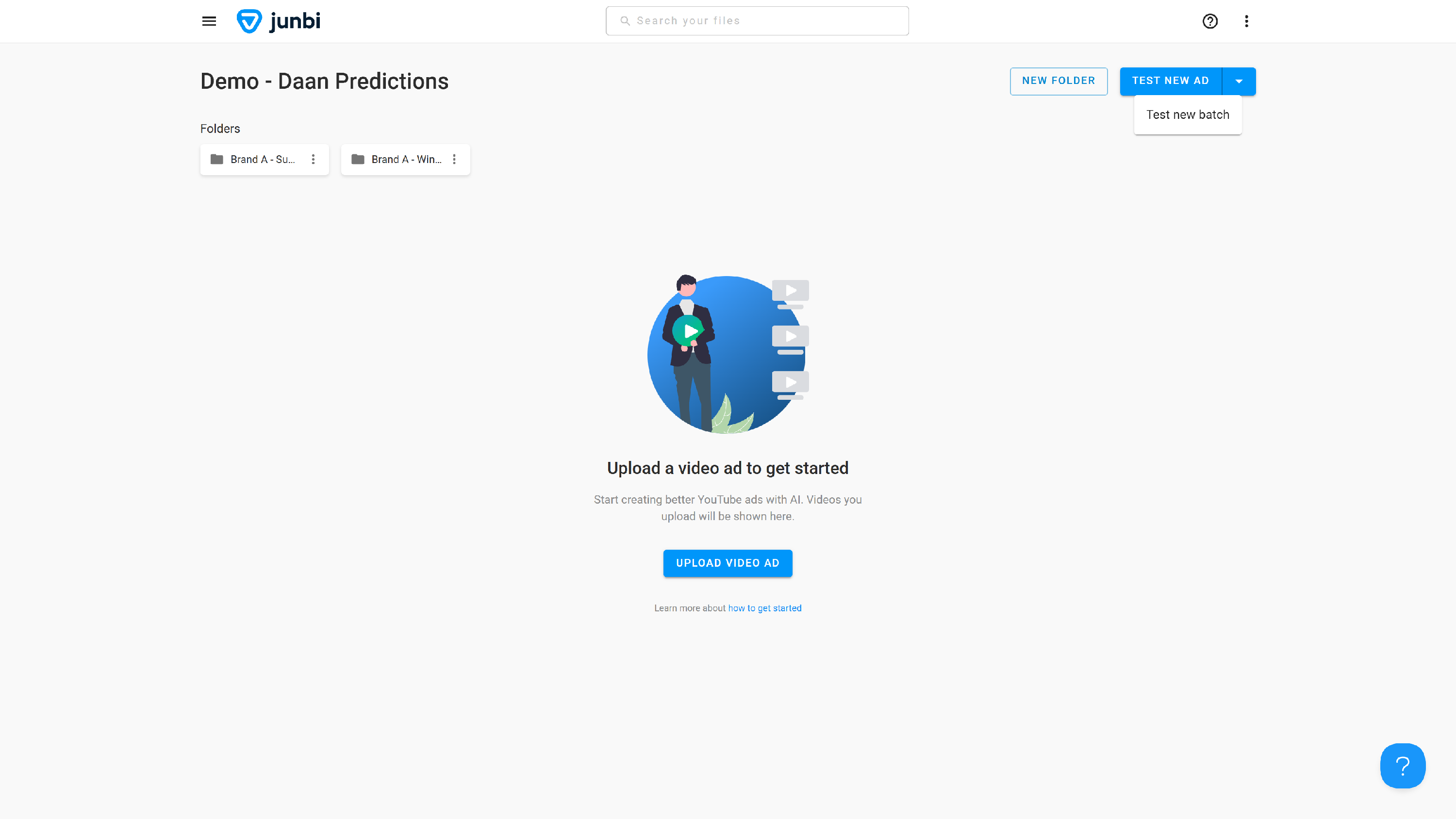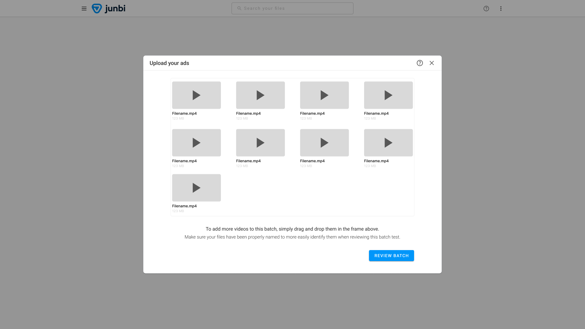 In addition to running single assets, junbi can also test multiple assets in a single run. This is called batch testing. When using batch testing, you can automatically apply your prediction settings to multiple videos, without the hassle of going through all of the steps for each ad individually. In addition to manually setting a batch's settings, you can also apply a preset to it.